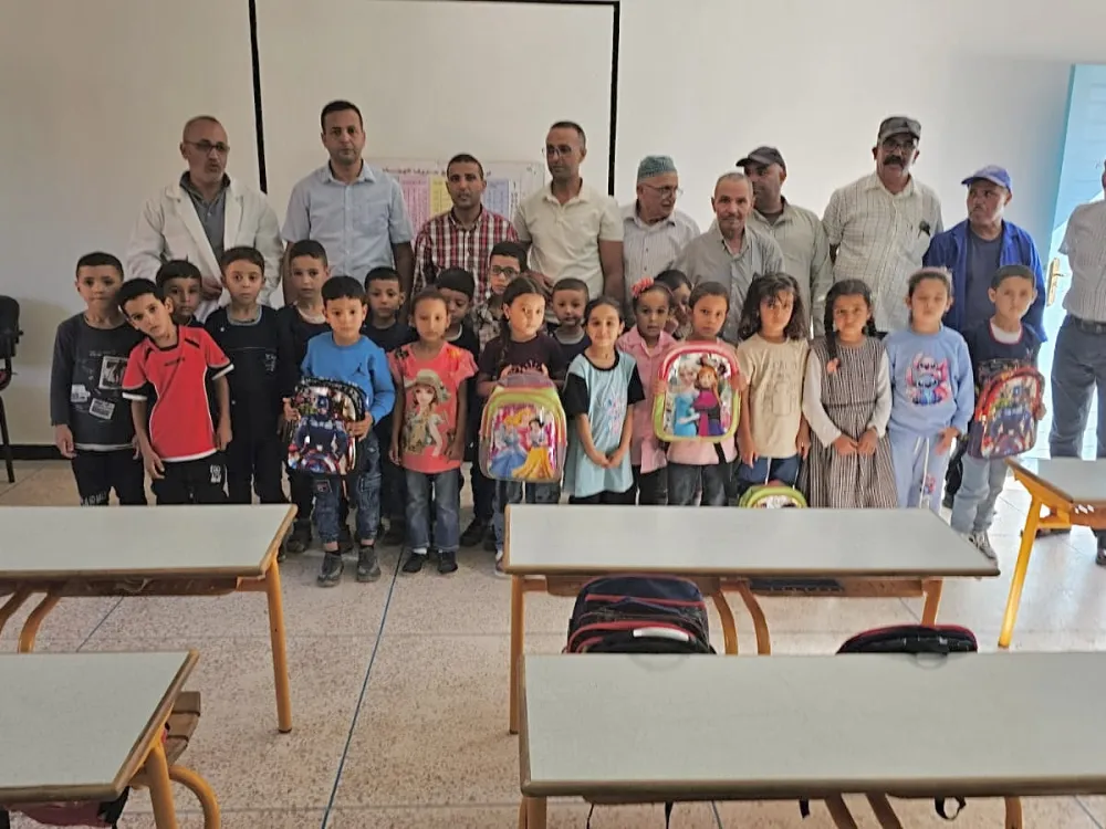 عملية توزيع المحافظ واللوازم المدرسية على تلاميذ المؤسسات التعليمية الابتدائية
