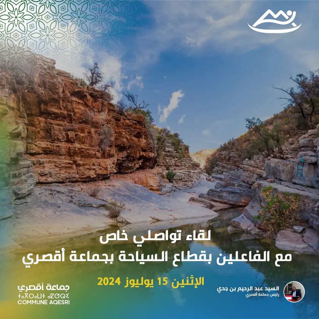 تعلن جماعة أقصري عن إقامة لقاء تواصلي خاص مع الفاعلين بقطاع السياحة وأصحاب المشاريع السياحية بالمنطقة